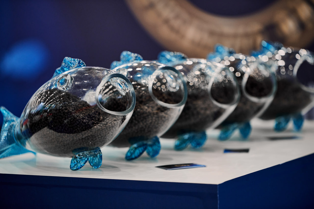 Осетровая ферма BELUGAFARM представила астраханскую икру, а также образцы продукции из выращенных на племенном заводе Волги каспийской белуги, русского осетра и шипа.