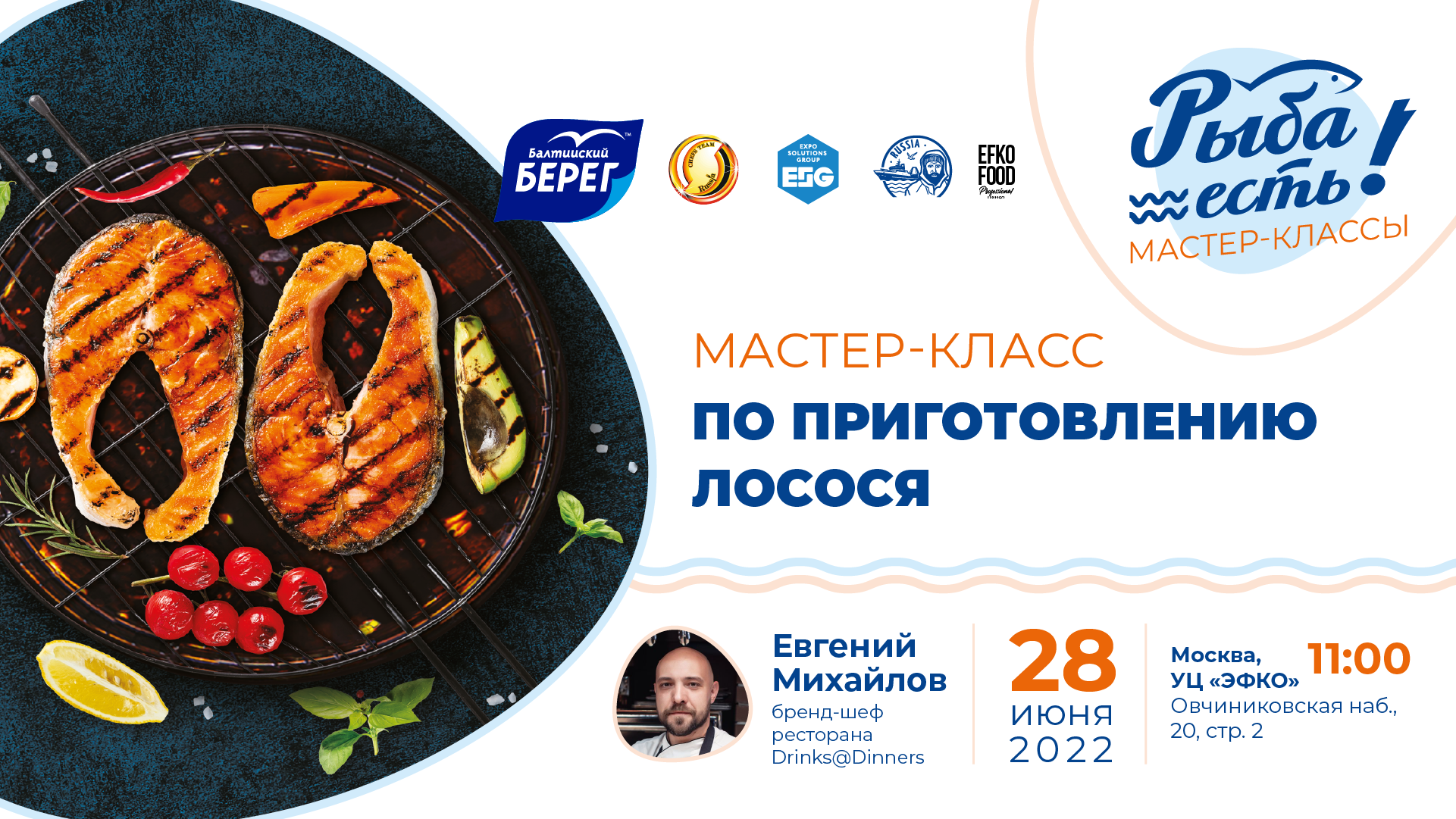 В рамках первого мастер-класса для поваров «Рыба-есть!» шефы ресторанов Москвы поделятся с коллегами рецептами приготовления продукции экспонентов выставки Seafood Expo Russia: атлантического лосося и дорадо.
